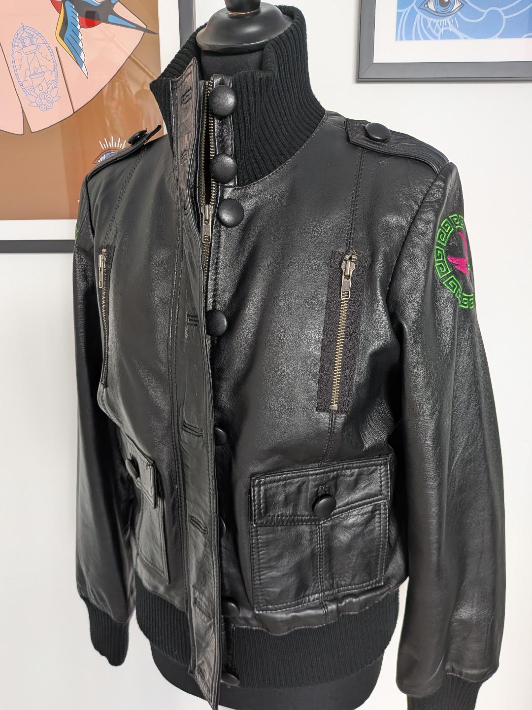 Ce modèle est une pièce unique sur une veste en cuir véritable de couleur noire.