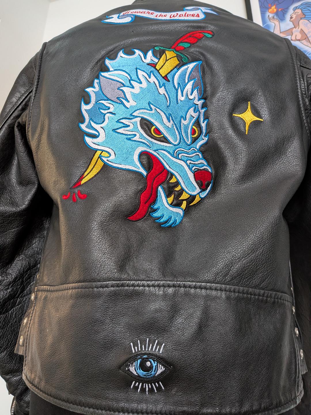 Les broderies du dos (loup + bannière) sont composées de plus de 150 000 points de broderie et leur réalisation prend + de 3 heures !